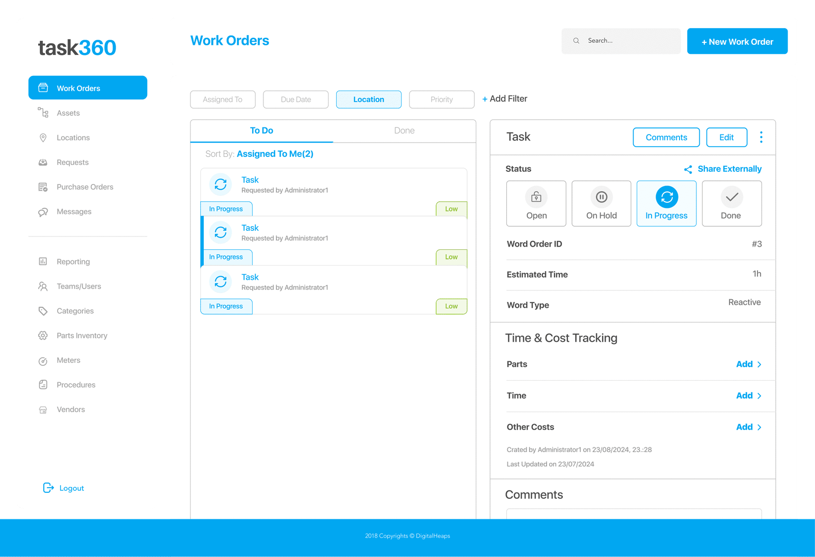 Task360 propose une solution sur mesure pour la gestion des installations, intégrant un suivi avancé des actifs, une planification de maintenance simplifiée et des rapports complets dans une seule plate-forme.